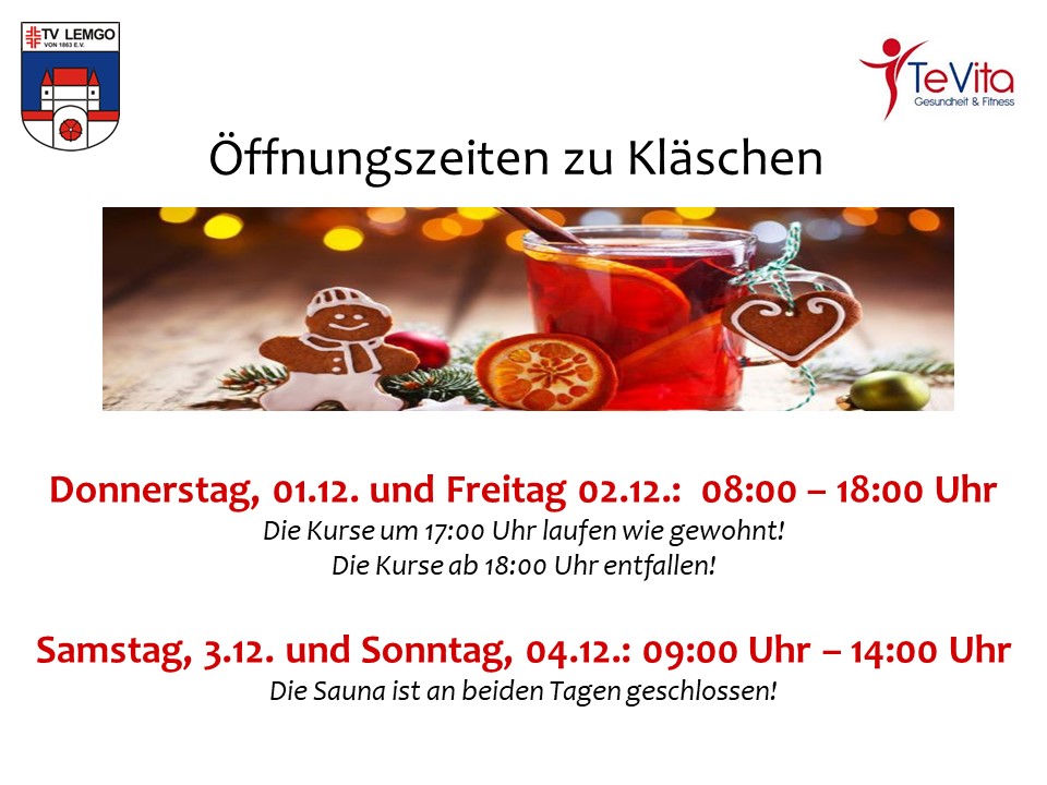 Home » Aktuell » Öffnungszeiten zu KläschenBeitrag vom 21. November 2022Öffnungszeiten zu KläschenUnsere Öffnungszeiten zu Kläschen (01.12.-04.12.) zurück zur Newsübersicht