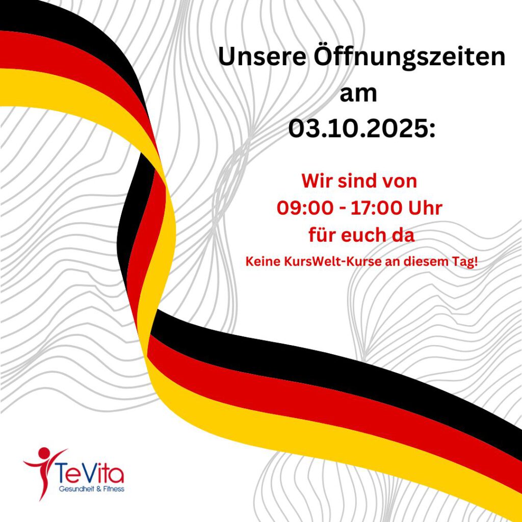Wir sind am Tag der deutschen Einheit, am Freitag, 03.10. von 09:00 bis 17:00 Uhr für euch da.